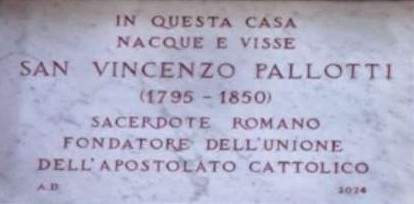 Dom Pallottich przy Via del Pellegrino, nie był jednak ich własnością. Wynajmowali go od niemiecko-austriackiej fundacji kościelnej, która aż po dzień dzisiejszy zachowała prawo jego własności. Z tym wiązały się trudności, by na fasadzie owego domu umieścić tablicę upamiętniającą narodziny świętego. Udało się to dopiero dwa lata temu, dzięki staraniom niemieckiego pallotyna, ks. Martina Manusa. Po długich negocjacjach, zarówno z właścicielami kamienicy jaki i z władzami miasta, 5 listopada 2024 roku, na domu przy Via del Pellegrino 130, odsłonięto tablicę upamiętniającą Dies Vincentius Pallotti. Napis na tablicy brzmi następująco: „W tym domu urodził się i żył św. Wincenty Pallotti (1795-1850), kapłan rzymski i założyciel Zjednoczenia Apostolstwa Katolickiego”.
