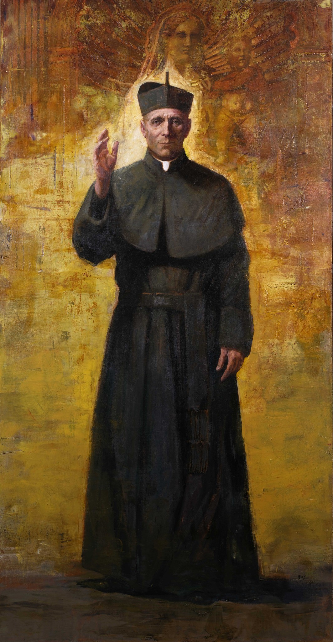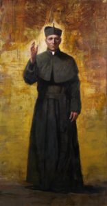 Powstał nowy obraz przedstawiający św. Wincentego Pallottiego (1795-1850), autorstwa pana Andrzeja Boj-Wojtowicza. Sam artysta tak go anonsuje: „Św. Wincenty Pallotti – 250x130cm, płótno, technika własna. Realizację obrazu poprzedziła majowa (2025 roku) podróż do Rzymu śladami Pallottiego, założyciela Zjednoczenia Apostolstwa Katolickiego. W Domu Generalnym pallotynów dokumentowałem maskę pośmiertną Świętego (rysunki i fotografie). Pracowałem też przy relikwiach w kościele SS. Salvatore in Onda. Niesamowite doświadczenie z kolejnym świętym. W tle Madonna del Parto, Jacopo Sansovino (1486-1570) z bazyliki Sant’Agostino w Rzymie”.
