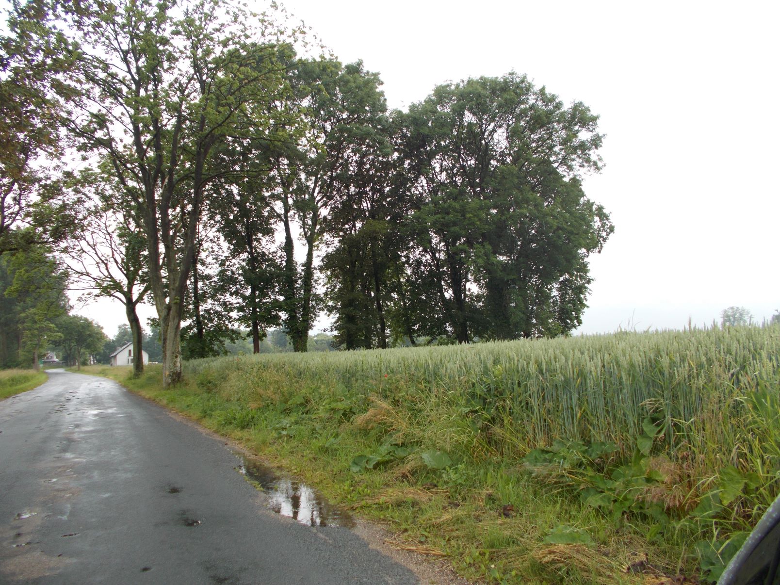 „… Jadę powoli, ostrożnie mijając dziury na drodze po minionej zimie. W latach pięćdziesiątych ubiegłego wieku widziałem, jak kładziono tu asfalt na poniemiecki bruk. W połowie drogi zatrzymuję rower przy wysokich drzewach. Trzynaście dorodnych klonów wyróżnia zielony kwadrat sto na sto metrów pokryty wszędobylskim bluszczem wspinającym się po pniach. To cmentarz po niemieckich mieszkańcach. Gdybym nie wiedział, że kiedyś tam był, uznałbym to miejsce za zwykłą zieloną oazę na skraju zbożowego pola. W konarach gałęzi lekki wiatr przebiera zielone liście, które jesienią zmienią barwę na miedzianą i kolejny raz spadną na zapomniane nekropoletko…
